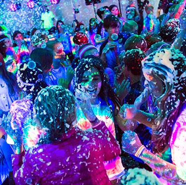 "...In the last two years [the Bubble Bus Team] has provided glow body paint which we highly recommend. The carnival mixer would be nothing without Tekno Bubbles!"